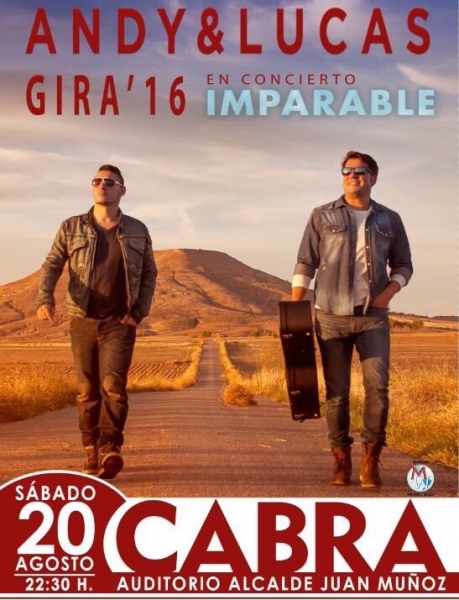 Y en el Auditorio Alcalde Juan Muñoz, nuevo concierto de Andy y Lucas, a partir de las 22:30h, organizado por Mundo Music 2002 con la colaboración de la delegación de Espacios Culturales del Ayuntamiento. El precio es 10 euros anticipada y 12 euros en taquilla.