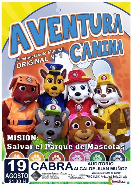 Y la noche del viernes acoge una actividad para el público infantil en el auditorio Alcalde Juan Muñoz. Aventura Canina: misión salvar el parque de mascotas, a cargo de Animagic Espectáculos, con la colaboración de la delegación de Espacios Culturales del Ayuntamiento. Dará comienzo a las 21:30h y el precio es 10 euros anticipada y 12 euros en taquilla.