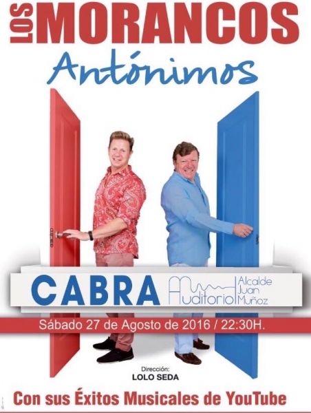 Para el sábado 27, el Auditorio Alcalde Juan Muñoz cierra su programación de este año y ofrecerá el espectáculo Antónimos, de Los Morancos, a las 22:30h. El precio de la entrada es de 25 euros anticipada y 30 euros en taquilla.