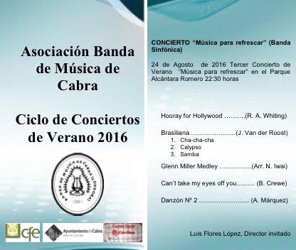 Se cierra así un intenso Verano Cultural que da paso a la Feria y Fiestas de Septiembre y que continuará luego con la programación del Certamen de Creación Audiovisual de Cabra, del que tenemos información en su página web y que iremos ofreciendo cuando se acerquen esos días de cine en nuestra ciudad, del 10 al 18 de septiembre.