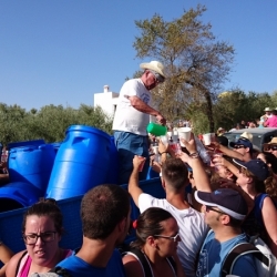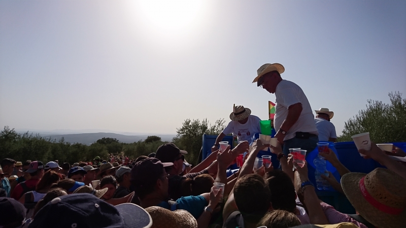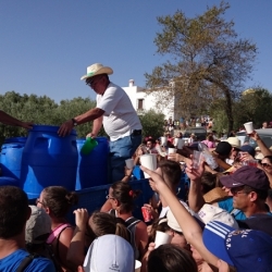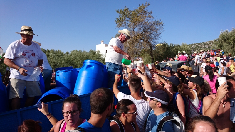 Según comentaban algunos de los más veteranos costaleros, alguno de ellos encargado de repartir el agua desde los vehículos preparados por la hermandad de san Rodrigo Martir, no se recuerda una jornada en la que se haya acabado el agua que distribuyen a cuántas personas participan en la bajada. Y así, prácticamente desde la Viñuela los depósitos iban mermando hasta agotarse, salvo alguna reserva que se dejó y terminó de distribuirse en la Casilla de la Salve.