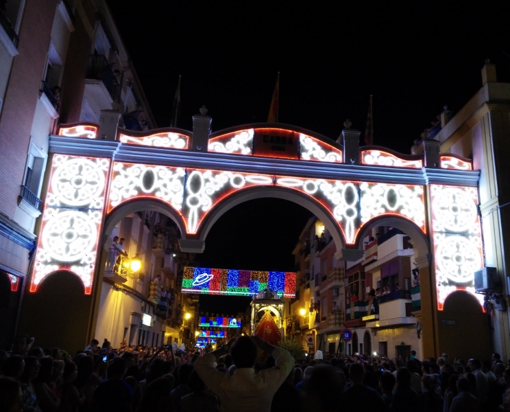 Había mucha gente anoche en Cabra, se notaba el ambiente festivo y la gran devoción a la Virgen de la Sierra que la acompañaron en todo el camino de bajada y luego en su recorrido por la ciudad hasta llegar a la parroquia. Hubo cierto retraso en la entrada oficial por los Arcos de Baena, que hizo que en los últimos tramos, la Virgen tuviera que llevar un paso muy rápido. Y también se hizo lento el recorrido de las carrozas que esperaban en la Avda. de Andalucía desde las 9 de noche.