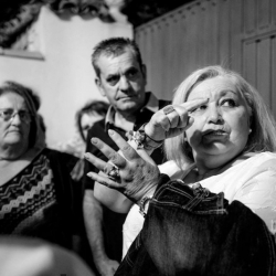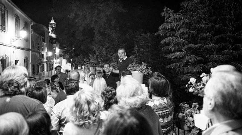 Ya en el corazón del barrio, lo histórico se cogió de la mano con los sentimientos más profundos. Fue Toñi Ruiz Muñoz quien asumió el encargo de explicar al numeroso grupo asistente lo que significó en la vida local la construcción de las primeras viviendas sociales que en su día promovió la vizcondesa de Termens, viviendas construidas a mediados del siglo XX. Nos contó el proceso de su construcción, los problemas que tuvo, los vecinos que residieron en dichas viviendas, elementos destacables de su arquitectura, etc. Asimismo, Toñi nos llevó al pasado de su infancia y juventud narrándonos lugares emblemáticos como la casa donde nació, los juegos que los niños jugaban en los años 60, lo que recordaba del primer cementerio civil de Cabra, luego solar para otras viviendas sociales de gran calado en su día: las casas portátiles, luego convertidas en mirador de la Paz.