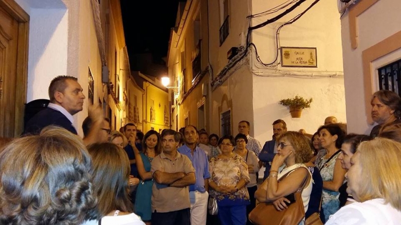 A continuación, Rafael Luna Leiva dio comienzo al recorrido por el barrio de la Villa, barrio elegido por constituir el paradigma histórico-artístico de nuestra ciudad, lo cual encaja a la medida con la efemérides celebrada: Día del Turismo. En una u otra medida, el grupo conformado por una cincuentena de amigos, por unos instantes pasaron a ser de ciudadanos a turistas de vienen a descubrir el valor patrimonial en el más amplio sentido del término,