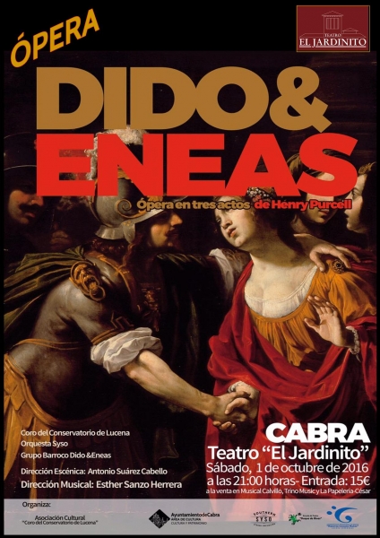 La ópera abre el telón de otoño en El Jardinito con la representación de la primera obra de Purcell, Dido y Eneas. Como ya hemos anunciado en La Opinión de Cabra, es una producción de la asociación cultural Coro del Conservatorio de Lucena. Bajo la dirección de Miguel Beato (coordinador de la producción) y Carmen Alaminos (ayudante en la dirección musical), que fueron profesores en el Conservatorio de Música de Cabra y con nuestro colaborador Antonio Suárez Cabello, como responsable de la dirección escénica. Recuerden sábado 1 de Octubre, a las 21:00h, en el teatro "El Jardinito". Entrada numerada: 15 euros. A la venta en "Musical Calvillo", "Trino Music" y "La papelería"- César fotógrafo.