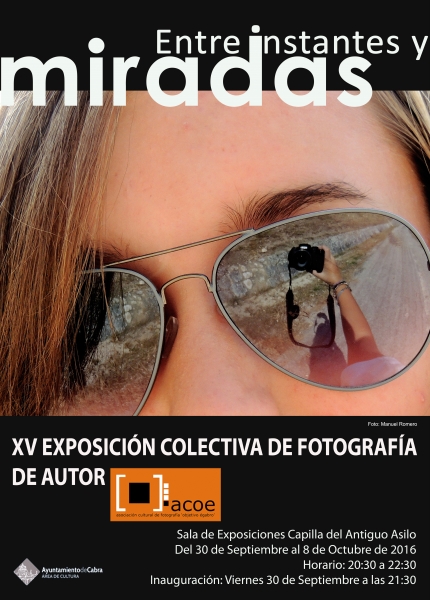 Y otro colectivo, ACOE, inaugura la XV exposición colectiva de fotografía de autor en la sala Capilla del antiguo asilo. Desde el 30 de septiembre hasta el 8 de octubre y en horario de 20:30h a 22:30h, siendo la apertura el viernes a las 21:30h. El título de la muestra de este año, Entre instantes y miradas.