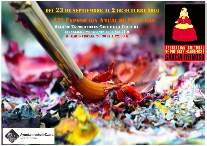 Hasta el 2 de octubre, podremos ver obras realizadas por componentes de la Asociación cultural de pintores egabrenses García Reinoso, que llega a su 12ª edición. En horario de 20:30h a 22:30h, en la sala de exposiciones de la Casa de la Cultura.