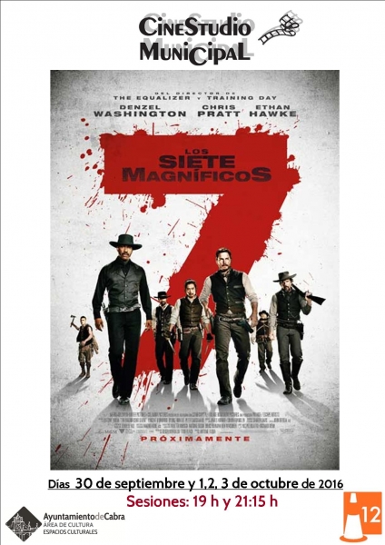 En el Cinestudio se proyecta Los 7 magníficos, una película dirigida por Antoine Fuqua que en su estreno el pasado 23 de septiembre en Estados Unidos, ha recaudado 35 millones de dólares en taquilla en su primer fin de semana. Los siete magníficos, que cuenta con la participación de Denzel Washington (American Gangster), Chris Pratt (Guardianes de la galaxia), Haley Bennett (La chica del tren) y Ethan Hawke (Gattaca) abrió el viernes con 12,6 millones, a los que se le sumaron el millón y medio de los preestrenos y las ganancias del resto del fin de semana. Es la primera película con esta elevada cifra de ingresos del director Antoine Fuqua, y la tercera que rueda con Denzel Washington. Una semana después de su estreno, la tenemos en Cabra durante los días 30 de septiembre, 1,2, y 3 de octubre, en sesiones de 19:00h y 21:15h. ¡No se la pierdan!, la crítica la califica como "sobresaliente epítome del western añejo".