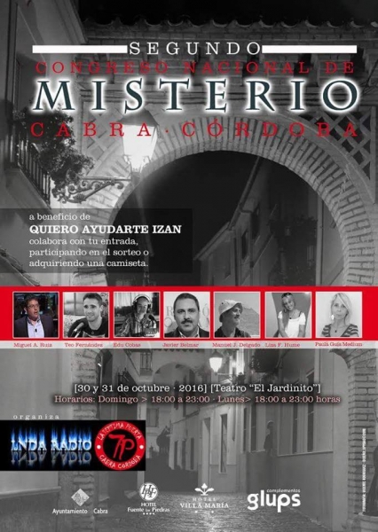 El Jardinito acogerá durante los días 30 y 31 de octubre este congreso nacional sobre misterio organizado por Lnda Radio. Colabora con tu entrada con "Quiero ayudarte Izan", participando en el sorteo o comprando una camiseta.