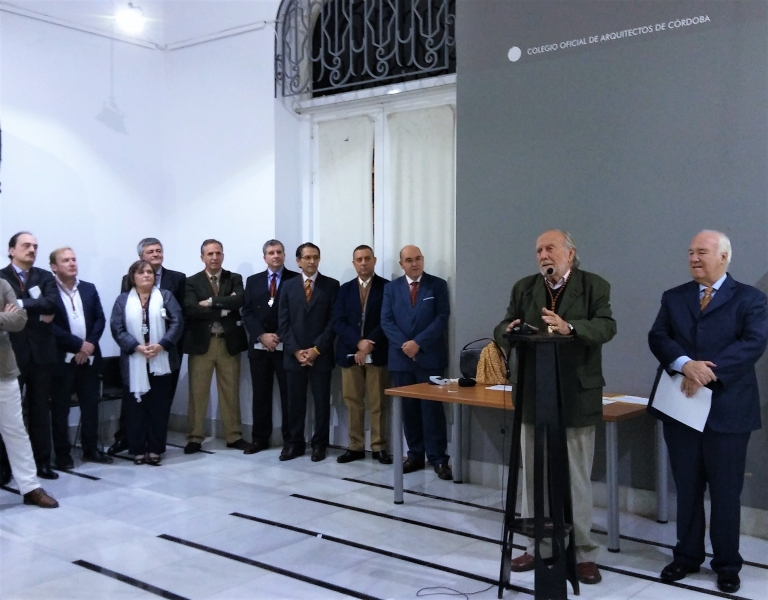 El acto se iniciaba con las palabras del decano del Colegio de Arquitectos, Felipe Romero, quien señaló en sus palabras de bienvenida, el buen hacer de este grupo de profesionales que han destacado por la corrección en sus trayectorias. Tres de los homenajeados cumplían medio siglo de colegiación y en su nombre intervino Rafael Navas que señaló en sus palabras la gratitud por el reconocimiento. Recordó los inicios del colegio en Córdoba y las visicitudes que en su etapa como presidente de la entidad tuvieron que afrontar. Entre ellas impedir la demolición del Gran Teatro de Córdoba o la actual sede en el palacete modernista de la Avenida del Gran Capitán, que se adquirió por el colectivo.