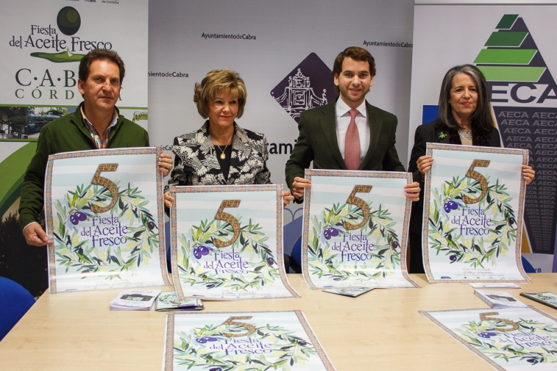 La ya consolidada Fiesta del Aceite Fresco llega a su quinta edición consecutiva celebrada en la localidad egabrense gracias a la organización de CADE y Ayuntamiento de Cabra. La presidenta de la asociación, Dolores Gutiérrez y el alcalde Fernando Priego han sido los encargados de presentar está mañana el cartel y programa de actividades de esta fiesta.