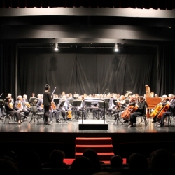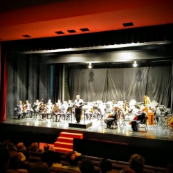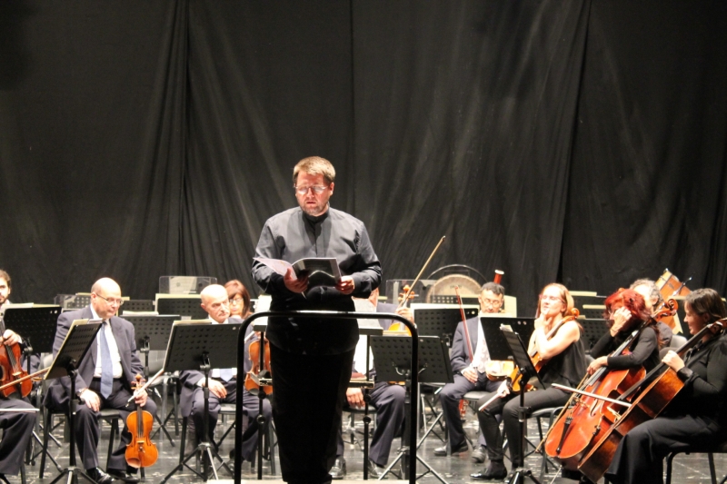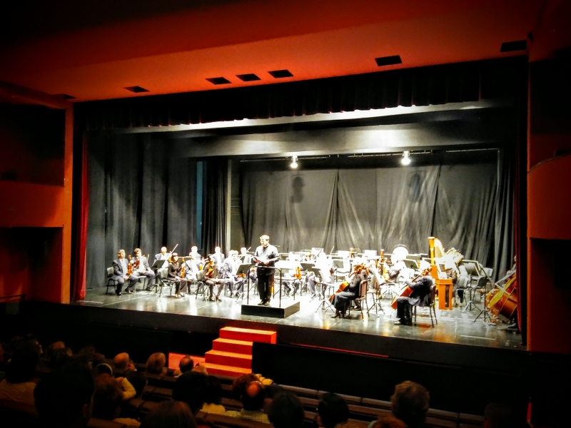 A las 9 de la noche, en el teatro egabrense que rozó el lleno, comenzó el Concierto y tras la afinación pertinente de la orquesta por la concertino Isel Rodríguez, salió a ocupar el podio el director de la formación, que fue recibido con grandes aplausos. Lorenzo Ramos era la primera vez que pisaba el escenario de "El Jardinito", no así la orquesta que ya lo he hecho en distintas ocasiones y se dirigió al público agradeciendo la asistencia e indicó que la primera obra que se iba a interpretar, la "Suite" "Don Quijote" de Georg Philip Telemann (1681-1767), el compositor más prolífico de la historia de la música, constaba de 7 partes, que relató para conocimiento del público, al no figurar en los programas de mano. La orquesta, reducida a una formación camerística de cuerda, hizo una deliciosa exposición de la bella partitura barroca, que sonó exquisita en las manos de Lorenzo Ramos. El público aplaudió con fervor esta primera actuación de la orquesta, que se desarrolló dentro de un silencio total, como todo el concierto.
