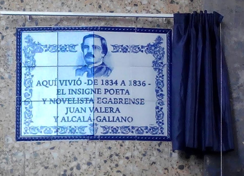 Juan Valera y Alcalá Galiano, nació en Cabra en 1824 y falleció en Madrid en 1905. Después de su breve paso por Córdoba, estudió Lengua y Filosofía en el seminario de Málaga, entre 1837 y 1840, y en el Colegio Sacromonte de Granada en 1841. Más tarde estudiaría Filosofía y Derecho en la Universidad de Granada, comenzando su carrera diplomática en Nápoles junto al embajador y poeta, Ángel Saavedra, duque de Rivas.