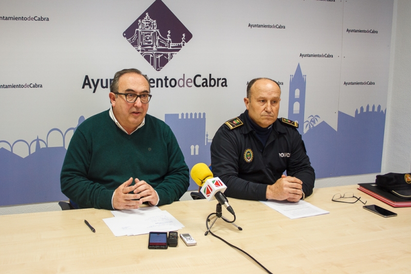 Esta mañana en rueda de prensa el Delegado de Seguridad Guillermo González junto con el Jefe de la Policía Local José Agudo han comunicado el balance sobre la seguridad en Cabra durante la celebración de la Navidad.