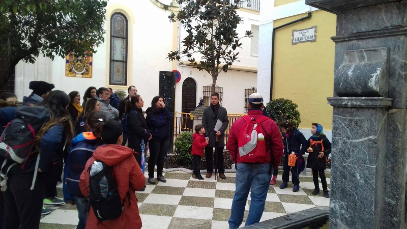 A tal efecto, solicitaron la colaboración de la asociación cultural Egabro 1240, que les preparó una ruta cultural para el grupo, formado por una treintena de niños, jóvenes y familias de Córdoba capital, Priego y Cabra, de edades comprendidas entre los 4 y los 16 años, acompañados por sus guías mayores (Carmen y Celia, dos estudiantes de Magisterio), el presidente de OJE Córdoba, Antonio Tapia, y el vicepresidente regional de la asociación, Santos Ortiz.