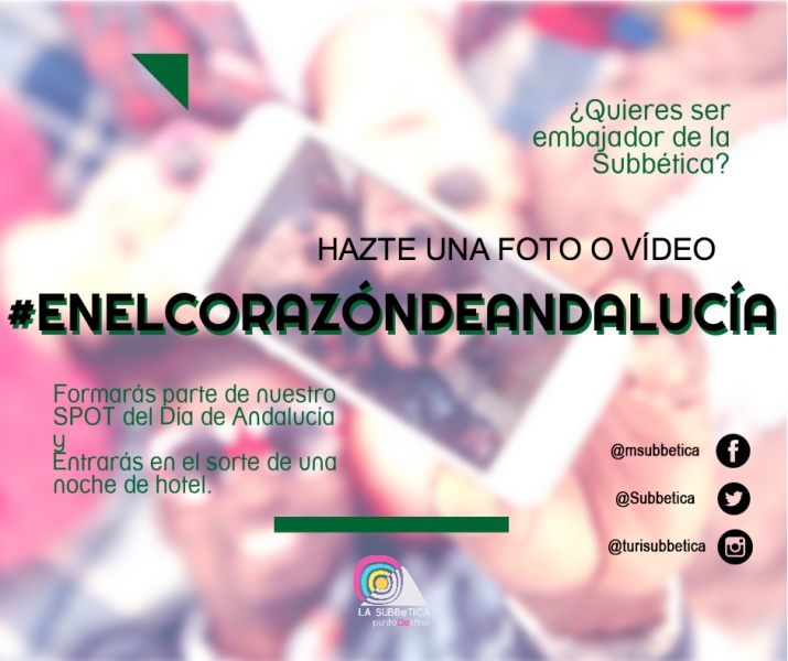 El concurso invita a la participación con este mensaje: "Como tú eres nuestro mejor embajador, queremos que hacerte protagonista de las experiencias inolvidables que se pueden vivir en la Subbética. ¡Queremos enseñarle al mundo que somos EL CORAZÓN DE ANDALUCÍA!"