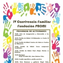 El próximo sábado, día 17 de junio , se celebrará la IV Convivencia Familiar de Fundación Promi con trabajadores, usuarios y sus familiares, que un año más tendrá lugar en R.A. "Juan Jiménez Fernández" den Av. Fuente las Piedras en Cabra.