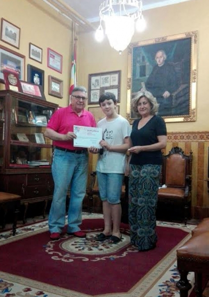 Miguel Carrillo García recibía su diploma de manos del director del histórico instituto, Francisco Ortiz Gama, y de la jefa del departamento de Lengua y Literatura, Mª Carmen García Flores.