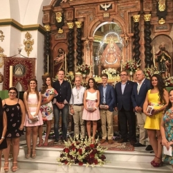 Seguidamente, componentes de la junta de gobierno de la Real Archicofradía y de la corporación municipal con el alcalde accidental, hermano mayor de san Rodrigo y presidente del consejo de participación ciudadana, entregaron unos regalos a la corte de honor, rey y reina de las fiestas y al pregonero. Por su parte, como también viene siendo habitual en este acto, el ayuntamiento también regaló a la Virgen un detalle. En esta ocasión ha sido una pieza de joyería realizada por el cordobés Rafael González Quesada con el nombre de CABRA en plata y circonitas que recogió el hermano mayor indicando que lo lucirá la Virgen el próximo 4 de septiembre.