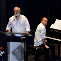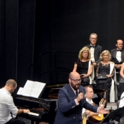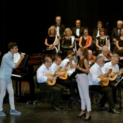 Como final de la primera parte, se hizo un pequeño homenaje a Antonio Villa Álvarez de Sotomayor, lucentino recientemente fallecido, pianista, director y compositor (autor de la peculiar Misa del Campo Andaluz, que todos los años en mayo se interpreta ante la Virgen de Araceli en la parroquia matriz de San Mateo de Lucena, en las Fiestas Aracelitanas), persona que estuvo muy ligada al Centro Filarmónico Egabrense, del que llegó a ser director-adjunto, con el director José Rodríguez López, al que le unía una gran amistad. Las palabras del presidente Manuel Molina, hicieron una sucinta biografía del músico de Lucena, fundador de la Coral Lucentina y cómo llegó con ésta a alcanzar el 1er. Premio en el Concurso Internacional de Habaneras de Torrevieja (Alicante) con la habanera que compuso, "Barquito de sal", de la que oiremos en una versión orquestal, arreglo de José Manuel Molina, esta bellísima pieza. La obra fue dicha magistralmente por la orquesta, bajo la siempre segura batuta de Manuel Aguilar y en la que escuchamos el chelo solista Antonio Peña, que "cantó" la melodía con un hacer delicioso y magnífico. Fue muy aplaudida.
