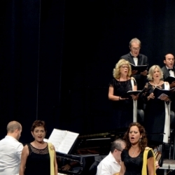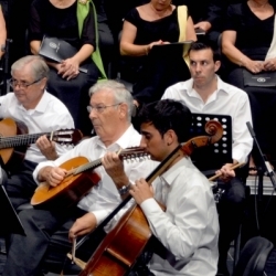 Las obras dedicadas a Nuestra Patrona fueron el resto del programa y en versión concierto son siempre muy atractivas oírlas. Así escuchamos a continuación 3 piezas que compuso Pepe Rodríguez López, las dos primeras a la Virgen de la Sierra, cuales fueron el "Himno a la bandera" y la canción "La Casita Blanca" cuyos solos estuvieron a cargo de las sopranos Carmen Agudo y Trini Valverde, con sus timbres particulares y las bulerías egabrenses "Mírame cara a cara" en la que otra vez ocupó el podio de la dirección Manuel Aguilar, diciéndolas el tenor Alfredo Martínez, con su voz característica muy apropiada a esta obra.
