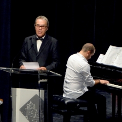 El presidente del CFE Manuel Molina Jiménez abrió la noche con unas palabras de agradecimiento a todos los presentes, incluidos las autoridades, rey, reina y damas de las Fiestas y comentó brevemente el programa que íbamos a interpretar.