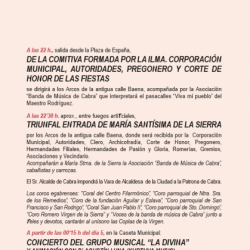 Les dejamos en las imágenes el programa para que tengan cumplida cuenta de los actos que van a tener lugar este 4 de septiembre. Y si pueden, asistan a la presentación del libro del pregón bajo el título La luz de mis días, el próximo 5 en el Centro Filarmónico Egabrense cuya venta será destinada al comedor social de Cáritas.
