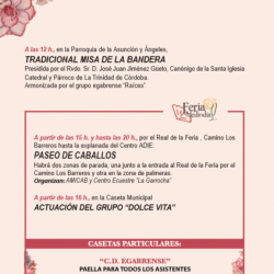 Y así vamos llegando al final de la Feria 2017 que luego tendrá continuidad con los actos religiosos y la novena a Nuestra Señora María Santísima de la Sierra. También el mismo día 9 comienzan exposiciones y se abre oficialmente la programación del 22º Certamen de Creación Audiovisual de Cabra.