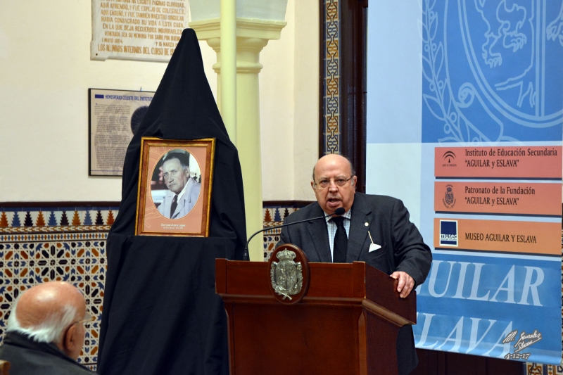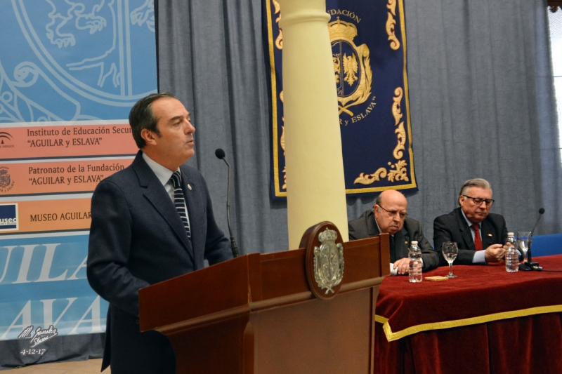 Por su parte el vicedirector del Instituto y presidente de la Fundación Aguilar y Eslava, D. Salvador Guzmán, comenzó su intervención recordando la figura del profesor y director del centro, D, José Arjona López que a partir de ahora figurará con un retrato en la Galería de Directores y del que destacó su sabiduría, la misma que emana el profesor D. José Peña González, del que hizo una semblanza de sus muchos méritos académicos y profesionales.