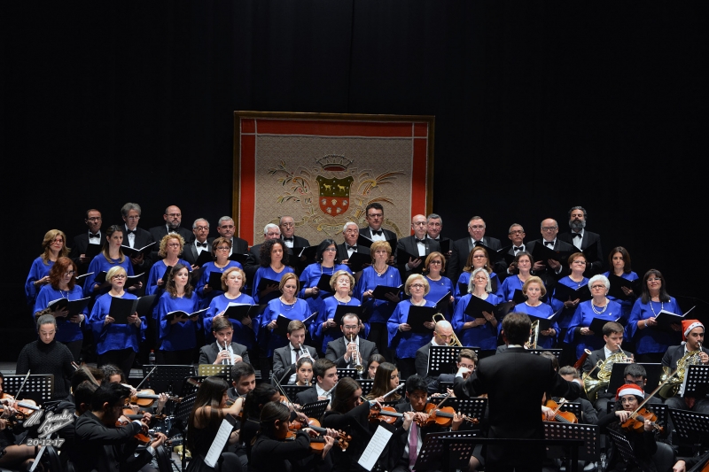 El concierto, denominado de Navidad, puso en su programa varios Villancicos y el primero en oírse, tras L"Arlesienne fue el "Adeste Fideles" de John Reading. Aparecieron en el escenario los componentes de la Coral Lucentina, destacando el atuendo femenino formado por blusa azul y falda negra.