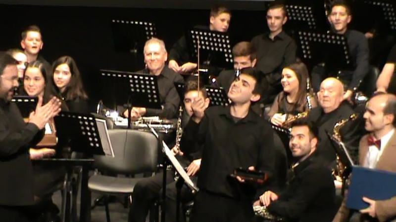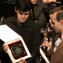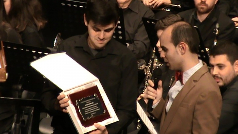 Después tomó la palabra el Presidente de la Asociación, Víctor Herrero Pareja, para agradecer la asistencia al público y para finalizar el concierto se hizo entrega de un premio, que habitualmente se concede en el Concierto de Santa Cecilia, pero que por el carácter especial que tuvo este año, no se pudo hacer entonces, al igual que las insignias. Se trataba del Premio "Maestro Rodríguez López", que fue para una persona muy comprometida en su trabajo con la Asociación y que la Junta Directiva, por unanimidad, se lo otorgó, el oboísta Miguel López León. Además de la placa habitual del Premio, le obsequiaron con un regalo relativo a la música, una batuta, pues Miguel está estudiando la Carrera de Dirección de Orquesta.