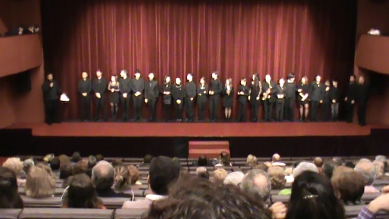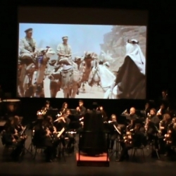 La pantalla situada al fondo de la escena, nos presentó, como lo haría con los restantes, un fragmento de la película "Laurence de Arabia" cuya banda sonora, del francés Maurice Jarre (1924-2009) se dijo por los chicos y chicas, entre los que había alguno de sus profesores, con un sonido espléndido. Un lujo, para la filmación que se proyectaba, mientras la música discurría con gran ejecución, hecha por la Banda Juvenil. Y en efecto era un lujo, si lo comparábamos con los principios del cine, en que la música que se oía era la de un piano, acompañando a una película muda.