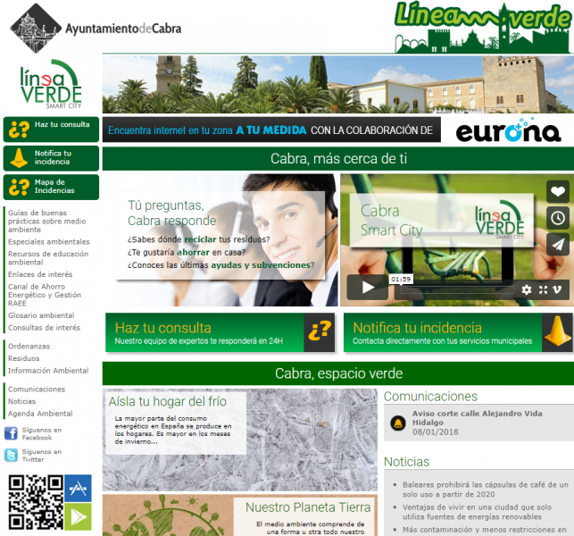 Al servicio Línea Verde también se puede acceder a través del dominio www.lineaverdecabra.com. Además de comunicar una incidencia o plantear una consulta, el usuario dispone de un amplio contenido de consulta medioambiental (guía de buenas prácticas, consejos, información propia del municipio etc....).