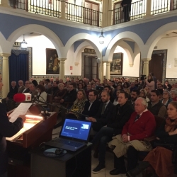 Tras una breve presentación y bienvenida del profesor Manuel Chacón Rodríguez en nombre del Instituto-Fundación Aguilar y Eslava, la concejal-delegada de Gobernación Cristina Jiménez Lopera presentó al conferenciante, el profesor Antonio Arrabal Maíz, que disertó sobre el bombardeo de Cabra por parte de la aviación republicana aquel 7 de noviembre de 1938, explicando todos sus detalles, apoyado en imágenes que se iban proyectando.