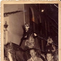 Melchor, Gaspar y Baltasar, a caballo, guiados y alumbrados por la estrella, por la calle San Martín, iban a Belén; la ermita, cerca del puente.