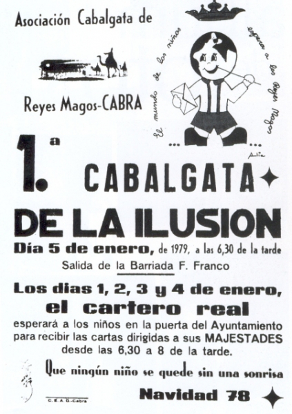 Con intermitencia y sin una organización dedicada expresamente a ello, la cabalgata o el recorrido de los Reyes Magos en Cabra no se institucionalizó hasta que la asociación creada en 1978 se puso manos a la obra y consiguió aunar ilusión, esfuerzo y trabajo para que el 5 de enero de 1979 tuviera lugar el inicio de un trabajo que hoy cumple 40 años y que sigue llenando de ilusión nuestra ciudad. Enhorabuena a todas las personas que desde aquellos años han trabajado y trabajan para la Cabalgata y todo lo mucho y bueno que rodea esta asociación y sus estupendos resultados.