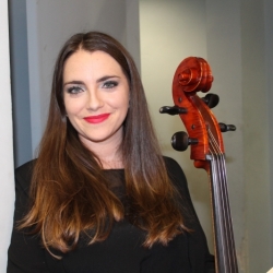 AZAHARA ESCOBAR, chelista cordobesa formada en su ciudad natal en dos instrumentos, piano y chelo, de los que ha conseguido los correspondientes títulos superiores.