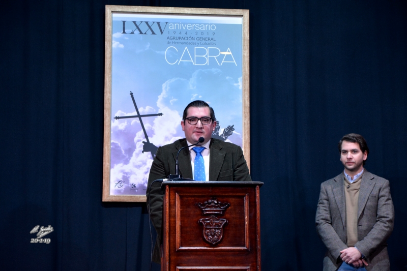 Tras la entrega de premios cerró el acto el alcalde de Cabra quien destacó algunas cuestiones por las que el Ayuntamiento colabora con la Agrupación de Cofradías y con la Semana Santa como motor económico, turístico, tradicional y popular que, junto a sus valores religiosos, constituye una de las señas de identidad de nuestra ciudad. El hecho de presentar oficialmente el cartel en estas fechas de enero, como se viene haciendo desde hace años, responde a la próxima celebración de la feria internacional de Turismo (FITUR) que se celebra en Madrid la próxima semana y a la que se lleva el cartel como uno de los atractivos promocionales de nuestra ciudad. También señaló la celebración del 75º aniversario de la Agrupación como una efeméride que va a contar con una serie de actos a lo largo de este 2019.