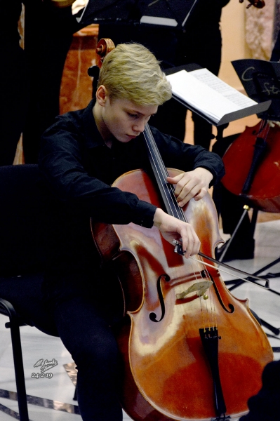 El 2º solista, de nombre Philip Engström, con 12 años, hizo el "Andante" de la "Sonata para chelo" Op 19 de Sergei Rachmaninov, con arreglo del profesor P. Schoening para la orquesta, pues la partitura original está escrita para piano y chelo y el chico también demostró que va por buen camino en su aprendizaje.