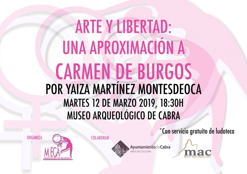 La ponencia tendrá lugar el próximo martes 12 de marzo a las 18:30h en el Museo Arqueológico y según han indicado desde la Asociación de Mujeres MEGA, con esta actividad quieren seguir ofreciendo formación e historias de mujeres, como el caso de Carmen de Burgos. Para facilitar la participación en esta actividad habrá un servicio gratuito de ludoteca.