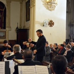 A continuación el director dio la bienvenida, como de costumbre, a cualquier nuevo miembro que se incorpore a la Orquesta y esta vez ha sido Hugo Pestana Vergillos, en percusión. También mencionó a dos colaboradores de la Banda de Música, para este concierto, Rodrigo Fernández Moreno (bombo) y Alejandro Chacón Marín (Platos).