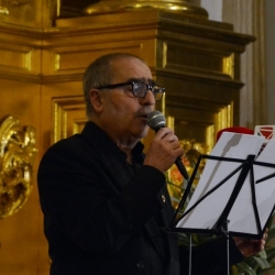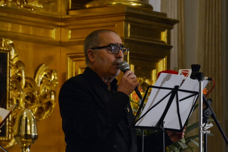 Estuvo conformado, además de por la música por la palabra y así a la hora puntual prefijada, ya situada la orquesta, tomó la palabra un miembro componente de la misma, Mateo Olaya Marín, quien como presentador hizo un esbozo de cómo se iba a realizar éste concierto, así como un pequeño resumen de las obras, a modo de historia, que se iban a ejecutar, así como las poesías y saeta relacionadas con el evento.