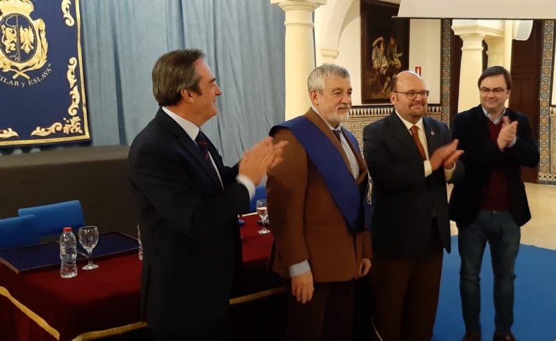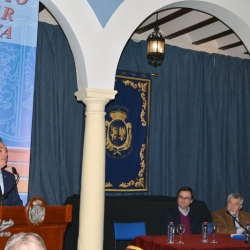 Tras una larga ovación de los asistentes a la charla, Guzmán tomaría la palabras para agradecer a Miñarro su disertación y hacerle entrega de la Beca, que a partir de ahora le distinguirá como COLEGIAL DE HONOR de la Fundación Aguilar y Eslava, un reconocimiento que se le hace en mérito de su valía y excelencia y por la colaboración extraordinaria que tiene con la institución egabrense.