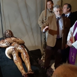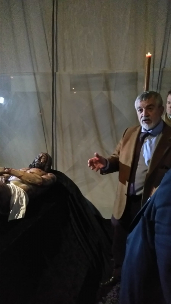 De esta forma concluiría el acto de presentación del Yacente sindonico realizado por Milñarro para el Museo de la Pasión de Cabra y que fue grabado por la televisión local y las cámaras de CanalSur TV para formar parte de un reportaje que se emitirá el próximo Domingo de Ramos en el programa "Testigos Hoy".