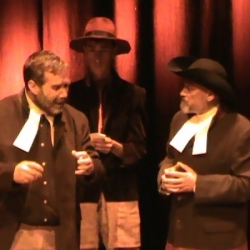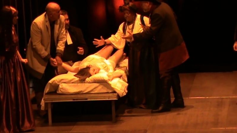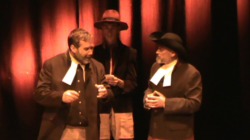 Y quedaban todavía primeras figuras. Un gran Reverendo Hale (José Mª León), espléndido, y otro grandísimo actor, que hizo de Gobernador Danforth (Francisco Javier Sánchez Madrid) junto a la jueza Hathorne (Mª José Martínez) que imponía silencio en la sesiones de la corte con su martillo. En papeles secundarios tuvimos con un excelente hacer, entre los varones, al alguacil Herrick (Esteban Pulido), Jacob (Alejandro Leyva), Cheever (Rafael Cantó), que arrestaba a los acusados y Thomas (Wellington da Silva). Y entre las féminas estaban Susanna (Francisca Arroyo), Dorothy (Feliciana Ariza), Mercy (Encarnación Chamizo) Sarah Good (Lola Castro) y Lucy (Daniela Torres).