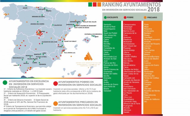Es el cuarto año que la Asociación realiza el ranking de ayuntamientos con esos datos que proporciona Hacienda. Utilizan cuatro criterios para elaborar este listado y calificarlos como "excelentes", "precarios" o "pobres" en inversión social.