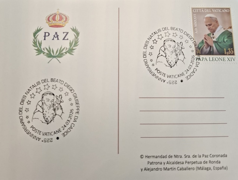 El Vaticano ha querido rendir homenaje a una de las figuras más influyentes de la espiritualidad española del siglo XVIII, el Beato Diego José de Cádiz, con la emisión de un matasellos conmemorativo que celebra el 225 aniversario de su fallecimiento, ocurrido el 24 de marzo de 1801 en Ronda. Una iniciativa que, más allá de su dimensión internacional, vuelve a poner de relieve la profunda vinculación de este célebre capuchino con la ciudad de Cabra.