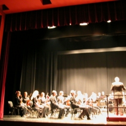 El escenario del Teatro "El Jardinito" de Cabra viene siendo ocupado por agrupaciones de categoría y así el pasado 22 de diciembre tuvimos en él, la Orquesta Sinfónica de la Radio Nacional de Ucrania en un CONCIERTO EXTRAORDINARIO DE NAVIDAD 2012. No hubo el lleno del pasado "Rigoletto" pero los espectadores que se acercaron al teatro hicieron una buena entrada y disfrutaron de una orquesta de categoría que en su intervención fue de bien a mejor. La orquesta fundada en 1931 es una orquesta, que en Cabra se presentó como de formato medio, similar a la de Córdoba o Granada, ahora si, unos integrantes cuya ejecución musical fue de total perfección, pues así son todos los músicos "rusos", como denominamos a los que proceden de países que formaron la antigua Rusia como es el caso de Ucrania.