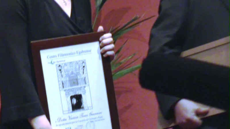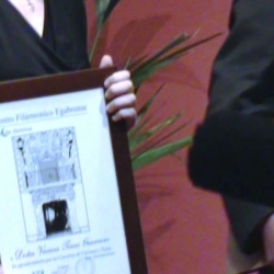 Para cerrar esta 2ª Noches Filarmónicas de 2013, el Presidente les entregó a los componentes del dúo unos cuadros-recuerdo de su paso por el C.F.E. Alabaron mucho las instalaciones del Filarmónico, en particular su Salón de Conciertos y su buena acústica, y el mérito que supone mantener una institución musical como esta en la que han actuado, que sobrepasa ya la centena de años.