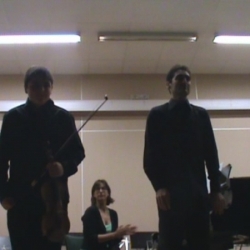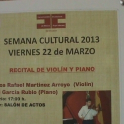 Con la denominación de Dúo de Violín (Carlos R. Martínez) y Piano (Jesús García Rubio) actuaron en el Salón de Actos del citado Conservatorio ante un público compuesto por alumnos y profesores del Centro así como personas ajenas que quería escuchar música de calidad (los conciertos son abiertos) y en efecto lo consiguieron al presenciar un concierto de categoría similar en obras al que hizo este dúo el pasado 18 en Guadix: Sonata en sol menor "El Trino del Diablo" de G. Tartini (1692-1770), Concierto en mi menor Op. 64 (Allegro Molto vivace) de F. Mendelssohn (1809-1847) en su primera parte y Sonata nº 1 en si menor (Allegro) BWV 1014 de J.S. Bach (1685-1750), Concierto nº 5 en La Mayor (Allegro Aperto) K 219 de W.A. Mozart (1756-1791) y Polonesa nº 1 en Re Mayor de H. Wieniakski (1835-1880) en la segunda, haciendo igualmente dos bises, Capricho Vasco Op. 24 de P. Sarasate (1844-1908) y Tambor Chino de F. Kreisler (1875-1962), concierto que comprendía distintos períodos de la historia de la música.